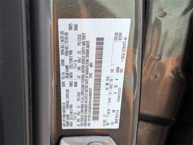 Equipped with 3.21 Axle Ratio, 4-Wheel Disc Brakes, 6 Speakers, ABS brakes, Air Conditioning, Alloy wheels, AM/FM radio: SiriusXM, Automatic temperature control, Brake assist, Bumpers: body-color, CD player, Compass, Delay-off headlights, Driver door bin, Driver vanity mirror, Dual front impact airbags, Dual front side impact airbags, Electronic Stability Control, Emergency communication system: 911 Assist, Exterior Parking Camera Rear, Four wheel independent suspension, Front anti-roll bar, Front Bucket Seats, Front Center Armrest, Front dual zone A/C, Front fog lights, Front reading lights, Fully automatic headlights, Illuminated entry, Knee airbag, Low tire pressure warning, Occupant sensing airbag, Outside temperature display, Overhead airbag, Overhead console, Panic alarm, Passenger door bin, Passenger vanity mirror, Power door mirrors, Power driver seat, Power steering, Power windows, Radio data system, Radio: AM/FM Single CD/MP3, Rear anti-roll bar, Rear seat center armrest, Rear window defroster, Rear window wiper, Remote keyless entry, Speed control, Speed-sensing steering, Split folding rear seat, Steering wheel mounted audio controls, SYNC Communications & Entertainment System, Tachometer, Telescoping steering wheel, Tilt steering wheel, Traction control, Trip computer, Unique Cloth Buckets w/60/40 Split Rear Seat, Variably intermittent wipers, and Wheels: 17 Sparkle Silver Painted Aluminum Visit Us at www.CARite.com then CARite of Cocoa to view more pictures. Call Us Today At 321-877-1000 To Schedule Your V.I.P Appointment!