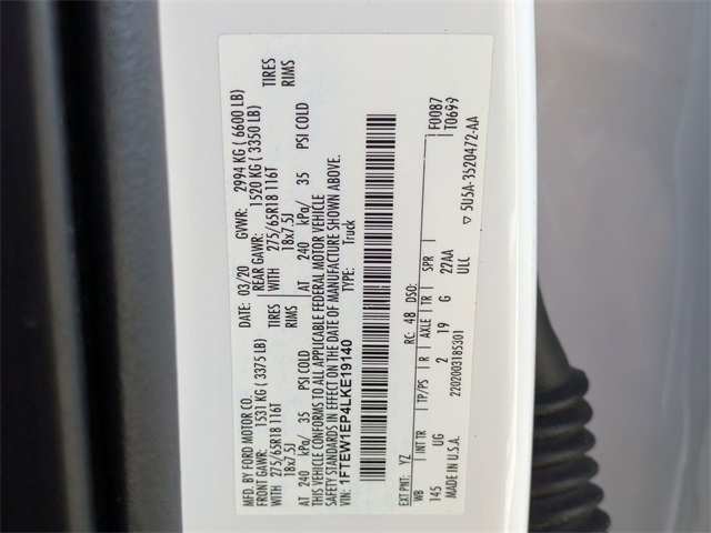 Equipped with Equipment Group 302A Luxury (4.2 Productivity Screen in Instrument Cluster, Auto-Dimming Rear-View Mirror, Cloth 40/20/40 Front Seat, Fixed Backlight w/Privacy Glass, Heated Front Seats, Leather-Wrapped Steering Wheel, Power Glass Heated Sideview Mirrors, Power-Adjustable Pedals, Rear Under-Seat Storage, Rear Window Defroster, and SiriusXM Radio), GVWR: 6,500 lbs Payload Package, GVWR: 6,600 lbs Payload Package, XLT Chrome Appearance Package (2-Bar Style Grille w/Chrome 2 Minor Bars, Chrome Door & Tailgate Handles w/Body-Color Bezel, Chrome Step Bars, Single-Tip Chrome Exhaust, and Wheels: 18 Chrome-Like PVD), XLT Power Equipment Group (LED Box Lighting and Power-Sliding Rear Window), 110V/400W Outlet, 18 Machined-Aluminum Wheels, 4-Wheel Disc Brakes, 6 Speakers, 8-Way Power Driver Seat, ABS brakes, Air Conditioning, Alloy wheels, AM/FM radio, Auto High-beam Headlights, Brake assist, Bumpers: chrome, Class IV Trailer Hitch Receiver, Compass, Delay-off headlights, Driver door bin, Driver vanity mirror, Dual front impact airbags, Dual front side impact airbags, Electronic Stability Control, Emergency communication system: SYNC 3 911 Assist, Exterior Parking Camera Rear, Front anti-roll bar, Front Center Armrest w/Storage, Front fog lights, Front wheel independent suspension, Fully automatic headlights, Illuminated entry, Low tire pressure warning, Occupant sensing airbag, Outside temperature display, Overhead airbag, Panic alarm, Passenger door bin, Passenger vanity mirror, Power door mirrors, Power steering, Power windows, Radio data system, Radio: AM/FM Stereo w/6 Speakers, Rear step bumper, Remote keyless entry, Remote Start System, Reverse Sensing System, Security system, Speed control, Speed-sensing steering, Split folding rear seat, Steering wheel mounted audio controls, SYNC 3, Tachometer, Telescoping steering wheel, Tilt steering wheel, Traction control, Variably intermittent wipers, Voice-Activated Touchscreen Navigation, Voltmeter, and Wheels: 17 Silver Painted Aluminum Visit Us at www.CARite.com then CARite of Cocoa to view more pictures. Call Us Today At 321-877-1000 To Schedule Your V.I.P Appointment!