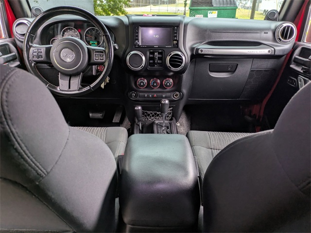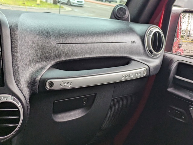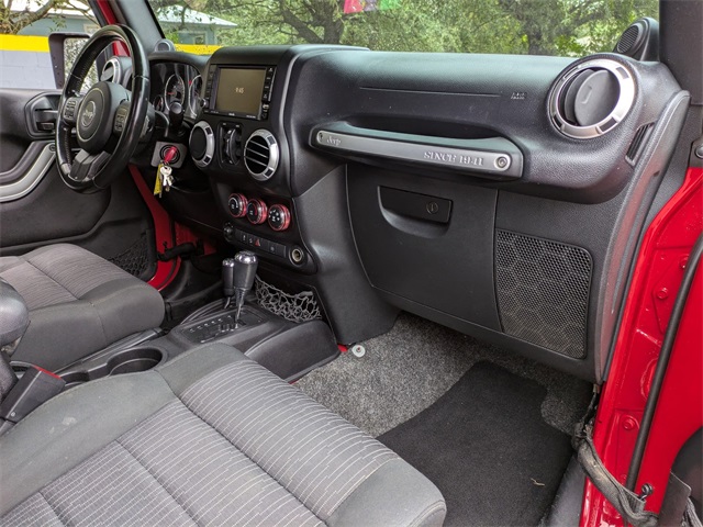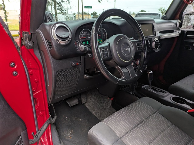 Equipped with Connectivity Group (Leather Wrapped Steering Wheel and Vehicle Information Center), Quick Order Package 24G, 18 x 7.5 Painted Aluminum Wheels, 4-Wheel Disc Brakes, 6.5 Touch Screen Display, 7 Speakers, ABS brakes, Air Conditioning, Alloy wheels, AM/FM radio: SIRIUS, Anti-Spin Differential Rear Axle, Audio Jack Input for Mobile Devices, Black Easy Folding Soft Top, Brake assist, CD player, Cloth Bucket Seats, Compass, Driver door bin, Driver vanity mirror, Dual front impact airbags, Electronic Stability Control, Front anti-roll bar, Front Bucket Seats, Front Center Armrest w/Storage, Front fog lights, Fully automatic headlights, GPS Navigation, Hard Disc Drive, Heated door mirrors, Heavy Duty Suspension w/Gas Shocks, Illuminated entry, Integrated roll-over protection, Leather steering wheel, Low tire pressure warning, Occupant sensing airbag, Outside temperature display, Panic alarm, Passenger door bin, Passenger vanity mirror, Power door mirrors, Power steering, Power windows, Radio data system, Radio: Media Center 130 CD/MP3, Radio: Media Center 430N CD/DVD/MP3/HDD/NAV (DISC), Rear anti-roll bar, Remote keyless entry, Remote Start System, Security system, SIRIUS Travel Link, Speed control, Split folding rear seat, Steering wheel mounted audio controls, Tachometer, Tilt steering wheel, Traction control, Trip computer, and Variably intermittent wipers Visit Us at www.CARite.com then CARite of Cocoa to view more pictures. Call Us Today At 321-877-1000 To Schedule Your V.I.P Appointment!