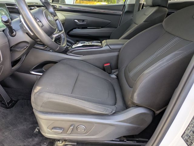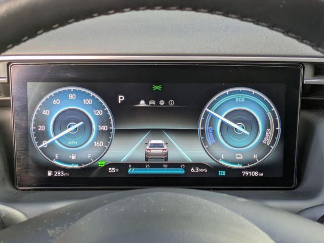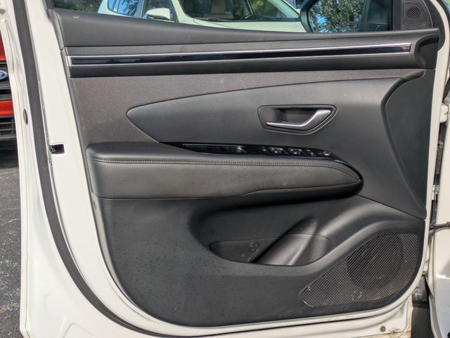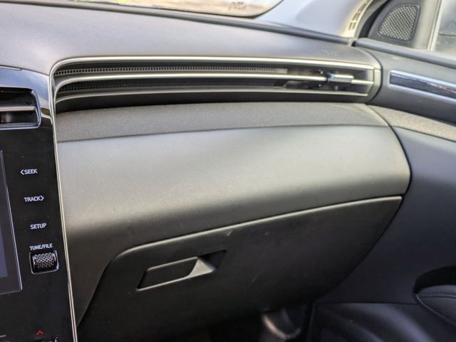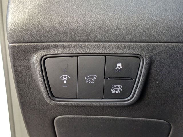 Cloth Seating Surfaces - Stain and odor resistant 8-way power driver's seat Power driver's lumbar support Heated Front Seats (3 steps) Rear Seats - 60/40 Split fold-down and reclining rear seatback with adjustable head restraint Dual level cargo floor Remote release folding rear seats (from cargo) Roof Trim - Gray Door Panels - Plastic Door handles- Metal paint Door Armrest- Integrated Seat map pocket - Dual Power window switches - Front auto/up down Sunvisors - Dual vanity mirror with cover Sunvisors with sliding function Sunvisors with Illumination Shift knob - Leather Cargo tie-down anchors (6) - 3 on each side, 2 floor and 1 upper per side Bag hook, 2nd row seat back Dual automatic temperature control with Auto Defogger and CleanAir Ionizer External temperature Heater Rear seat heater ducts Floor console-mounted rear A/C vents Cabin air filter Rear window defroster with timer 4-spoke steering wheel Leather-wrapped steering wheel Tilt and telescoping steering wheel Steering wheel with Audio controls (volume up/down, seek up/down, mode) Steering wheel with cruise control Meters/Gauges - 10.25" Digital instrument cluster Meters/Gauges - Includes Speedometer; tachometer; coolant temperature; fuel level; odometer, digital; trip odometer Indicator- PRND - With gear position in manual mode Cruise Control Indicator Smart cruise control with stop and go Indicator Turn signal/hazard indicator High Beam Assist Indicator Parking Brake Indicator Adjustable Illumination Level Smart Cruise Control with Stop and Go (SCC) Power Door Locks Remote Keyless Entry System - With Alarm and panic Proximity key entry - With push button start and remote start (on key fob) Remote Releases - Hood Storage Tray (below 12-volt outlet) Front Center Console - Fixed armrest storage box with tray Dual Cupholders - Front center console-mounted Rear center armrest with cupholders 12-volt outlet (2) - Front (1)/ cargo (1) Assist Grips (4) Rear Coat Hanger (1) Glove Compartment - With Damper Glove Compartment - Illuminated Inside Rearview Mirror - Manual Day/Night Electrochromic Mirror with HomeLink Wireless Device Charging Blue Link Central dome light (with delay) and auto cut-off (No central on models with panoramic sunroof) Front maplights Front and Rear LED maplights Cargo Area light Instrument panel switch illumination (hazard) Illuminated power window switches Illuminated push button start Ambient interior lighting - Upper center console and front door pockets (10-color) Hyundai Digital Key |