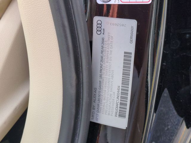 Equipped with ABS brakes, Alloy wheels, Compass, Electronic Stability Control, Front dual zone A/C, Heated door mirrors, Heated Front Seats, Heated front seats, High intensity discharge headlights: Bi-xenon, Illuminated entry, Low tire pressure warning, Navigation System, Power moonroof, Remote keyless entry, Traction control, 10 Speakers, 4-Wheel Disc Brakes, Air Conditioning, AM/FM radio: SiriusXM, Anti-whiplash front head restraints, Audi Connect w/Online Services, Audi Sound System, Auto-dimming door mirrors, Auto-dimming Rear-View mirror, Automatic temperature control, Brake assist, Bumpers: body-color, CD player, Delay-off headlights, Driver door bin, Driver vanity mirror, Dual front impact airbags, Dual front side impact airbags, Exterior Parking Camera Rear, Four wheel independent suspension, Front anti-roll bar, Front Bucket Seats, Front Center Armrest w/Storage, Front fog lights, Front reading lights, Garage door transmitter: HomeLink, Genuine wood console insert, Genuine wood dashboard insert, Genuine wood door panel insert, HVAC memory, Knee airbag, Leather Seating Surfaces, Leather Shift Knob, Leather steering wheel, Memory seat, Occupant sensing airbag, Outside temperature display, Overhead airbag, Panic alarm, Passenger door bin, Passenger vanity mirror, Power door mirrors, Power driver seat, Power passenger seat, Power steering, Power windows, Radio data system, Radio: Audi MMI Navigation Plus w/MMI Touch, Rain sensing wipers, Rear air conditioning, Rear anti-roll bar, Rear fog lights, Rear reading lights, Rear seat center armrest, Rear window defroster, Security system, Speed control, Speed-sensing steering, Speed-Sensitive Wipers, Split folding rear seat, Steering wheel mounted audio controls, Tachometer, Telescoping steering wheel, Tilt steering wheel, Trip computer, Turn signal indicator mirrors, USB Audi Music Interface, Variably intermittent wipers, and Wheels: 18 10-V-Spoke-Design Visit Us at www.CARite.com then CARite of Cocoa to view more pictures. Call Us Today At 321-877-1000 To Schedule Your V.I.P Appointment!